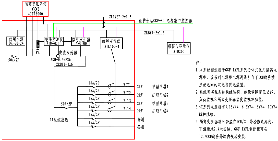 GGF-IXFL醫(yī)用隔離電源柜系統(tǒng)接線圖