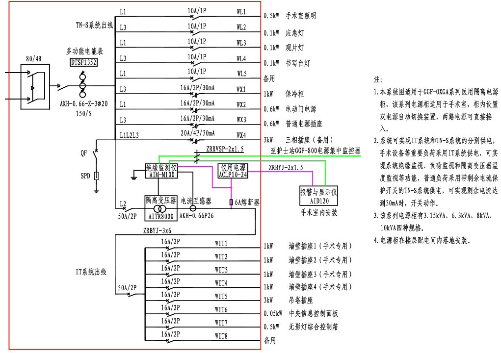 GGF-OXGA醫(yī)用隔離電源柜系統(tǒng)接線圖