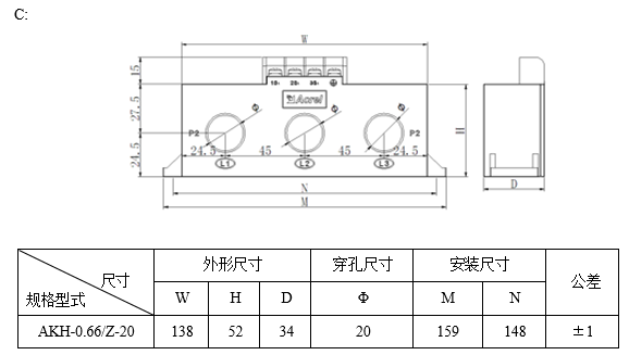 AKH-0.66 Z系列三相電流互感器產(chǎn)品外形美觀,接線方便。外殼材料可選用耐高溫增強(qiáng)尼龍、阻燃PC/ABS合金,作為交流電流信號(hào)采集元件,一般與AMC16、PZ-3O0配套使用,可減小電流互感器安裝空間和接線的煩瑣,為用戶降低成本。