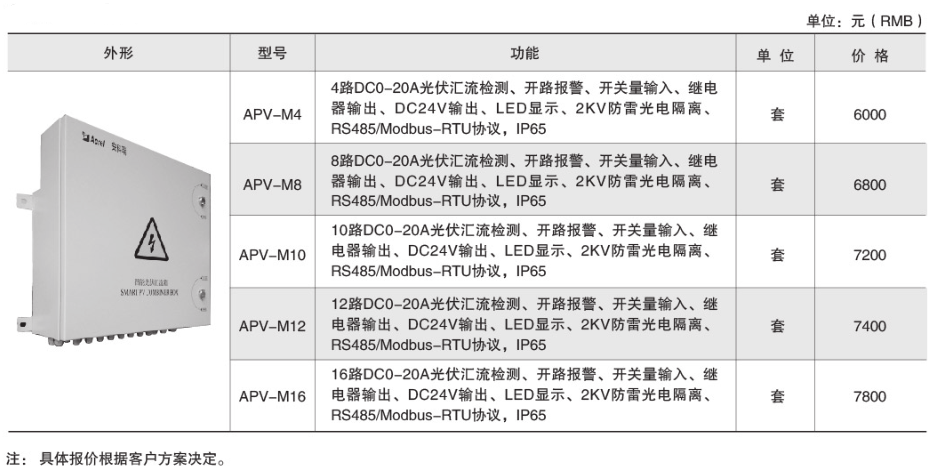 APV系列智能光伏匯流箱主要作用就是對光伏電池陣列的輸入進(jìn)行一級匯流,用于減少光電池陣列接入到逆變器的連線,優(yōu)化系統(tǒng)結(jié)構(gòu),提高可靠性和可維護(hù)性。