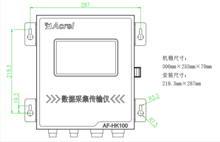 AF-HK100 污染源在線自動(dòng)監(jiān)控(監(jiān)測(cè))數(shù)據(jù)采集傳輸儀是應(yīng)環(huán)保領(lǐng)域各級(jí)國(guó)控、省控 及市控污染源環(huán)境在線監(jiān)控(監(jiān)測(cè))系統(tǒng)的需求而開發(fā)研制的產(chǎn)品,通過模擬通道、開關(guān)通 道、數(shù)字通道(RS232/485/LoRa)與前端各類監(jiān)測(cè)儀器/儀表實(shí)現(xiàn)無縫連接,進(jìn)行本地?cái)?shù)據(jù) 采集、存儲(chǔ)、處理與展示,并通過 4G/有線等網(wǎng)絡(luò)將數(shù)據(jù)遠(yuǎn)傳至監(jiān)控中心。