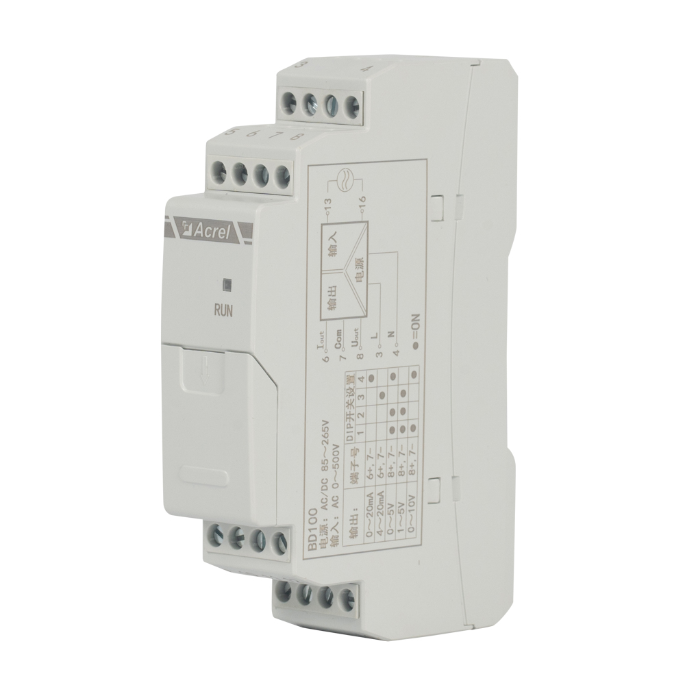 BD100系列電量變送器是一種將電網(wǎng)中的電流、電壓電參量,經(jīng)隔離變送成線性的直流模擬信號或數(shù)字信號裝置。產(chǎn)品符合GB/T13850-1998、IEC-688 標(biāo)準(zhǔn)。