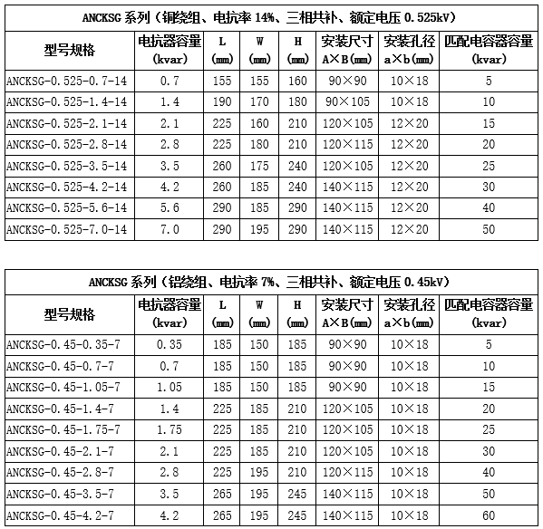 技術(shù)要求:適用電容器5kVAR;7%電抗率;銅芯