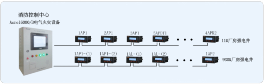 我司承接其電氣火災(zāi)系統(tǒng)的搭建,對(duì)安裝于廠房配電箱進(jìn)線處的剩余電流火災(zāi)探測(cè)器設(shè)計(jì)一套Acrel-6000/B電氣火災(zāi)系統(tǒng),由此來實(shí)時(shí)監(jiān)測(cè)廠房內(nèi)重要回路的漏電流,以確保廠房配電系統(tǒng)的電氣安全。