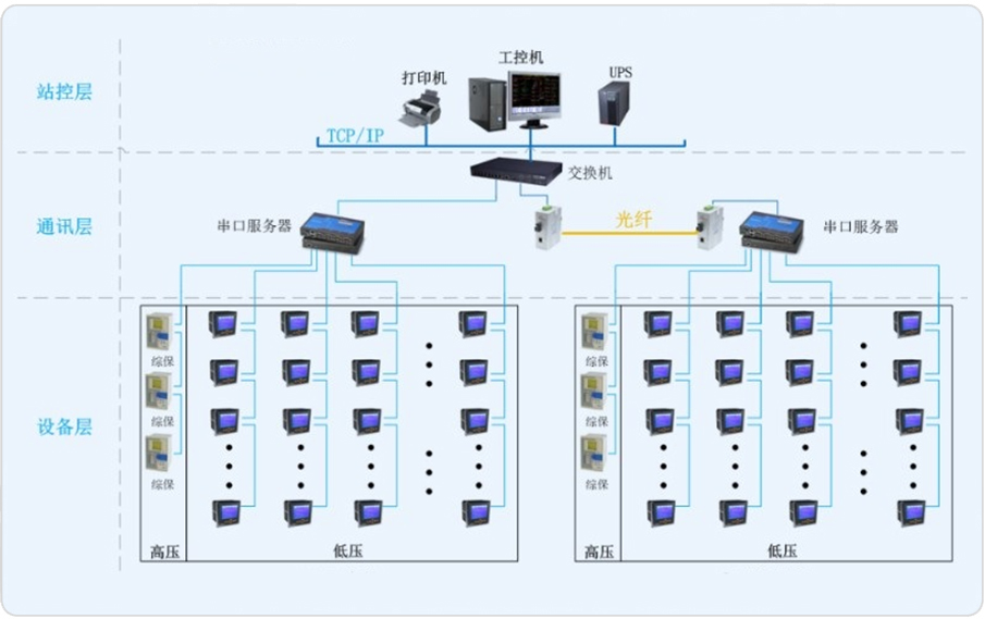 本系統(tǒng)主要監(jiān)測(cè)新建3.6萬(wàn)KL/年精品啤酒項(xiàng)目聯(lián)合車(chē)間,該車(chē)間共有2組變壓器。3臺(tái)AM5微機(jī)保護(hù)裝置,5只ACR330ELH、41只ACR120EL、4只PZ72L-AI3多功能電力儀表接入電能管理系統(tǒng)。通訊總線直接接入變電所內(nèi)串口服務(wù)器,從而儀表與監(jiān)控主機(jī)的數(shù)據(jù)連通。安科瑞電氣股份有限公司為其配置一套Acrel-3000電能管理系統(tǒng),實(shí)時(shí)監(jiān)測(cè)變電所內(nèi)各個(gè)回路的電流、電壓、功率、開(kāi)關(guān)狀態(tài)等電參量,由此達(dá)到變電所少人值守或無(wú)人值守的智能化管理。