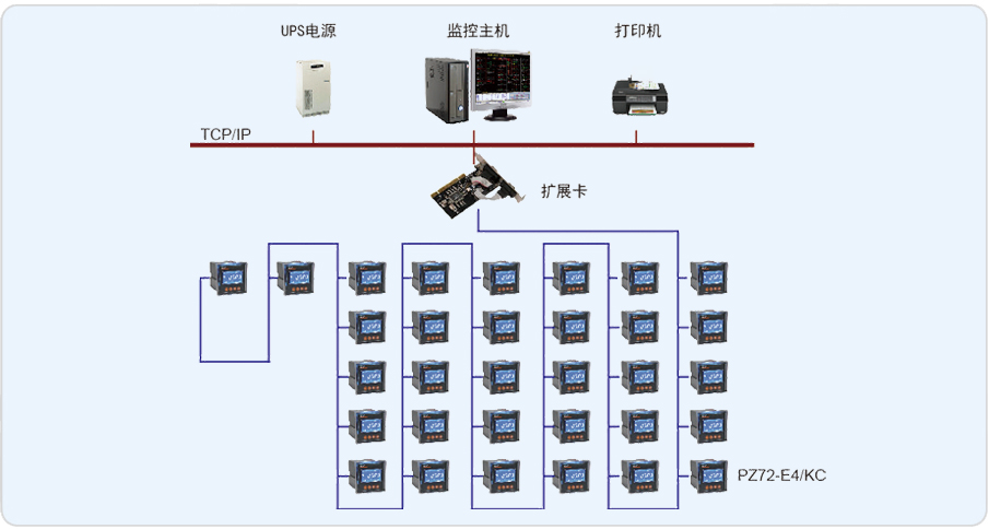 安科瑞電氣股份有限公司于2012年11月承接了常熟滌綸有限公司配電改造監(jiān)控系統(tǒng)項(xiàng)目。采用Acrel-3000電能管理系統(tǒng),完成了對(duì)四個(gè)廠區(qū)的電能計(jì)量功能,四個(gè)廠區(qū)共計(jì)一個(gè)高壓出線回路,32個(gè)低壓出線回路,均安裝PZ72-E4/KC可編程電測(cè)表,所有儀表均通過RS485總線連接至擴(kuò)展卡,再通過擴(kuò)展卡將數(shù)據(jù)上傳至到整個(gè)電能管理系統(tǒng)中。