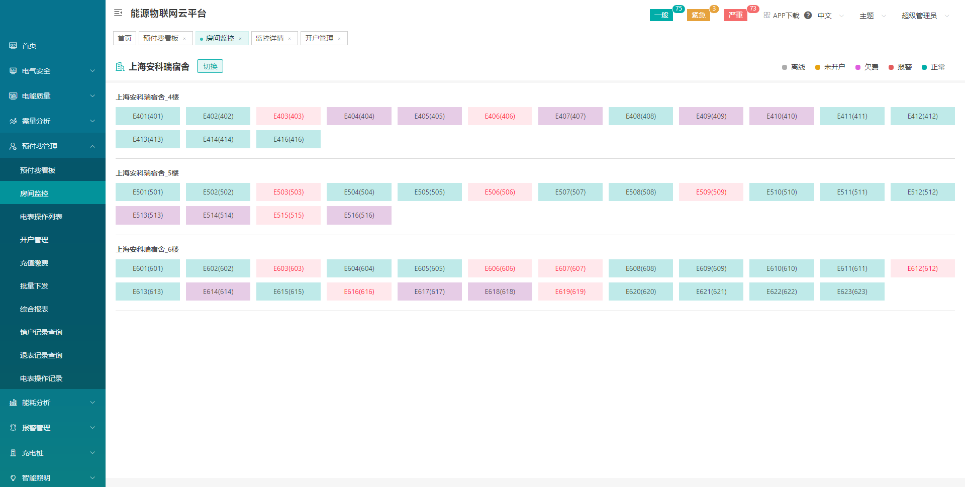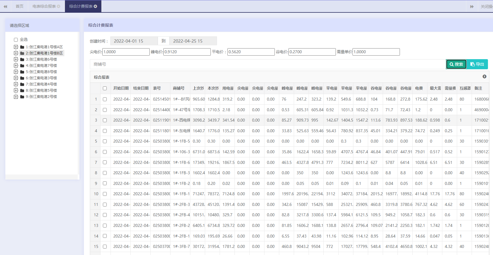 系統(tǒng)針對商鋪開戶不僅支持一戶一表,也支持一戶掛多表的需要;同時解決了項目改造后新老表切換時,老表金額轉(zhuǎn)入的問題;支持峰谷電價;可對單表設(shè)置功率過載的閾值,也支持設(shè)置單表金額報警的兩級閾值。