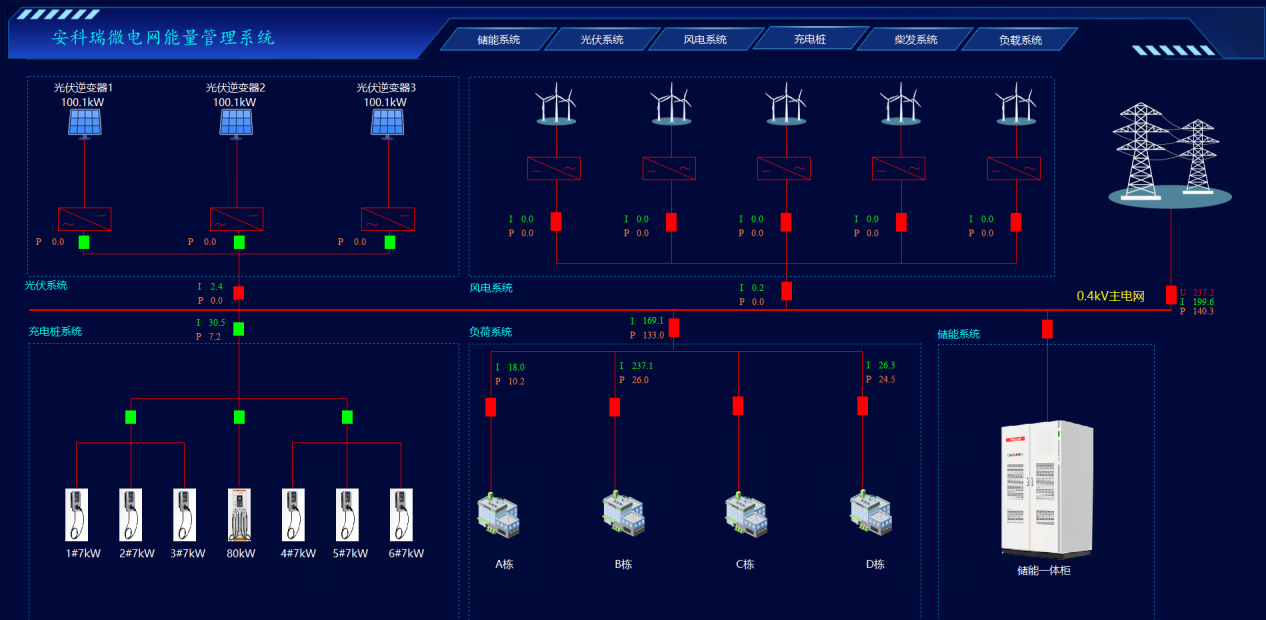 安科瑞企業(yè)微電網(wǎng)能量管理系統(tǒng)Acrel-2000MG,是安科瑞根據(jù)新型電力系統(tǒng)下微電網(wǎng)監(jiān)控系統(tǒng)與微電網(wǎng)能量管理系統(tǒng)的要求,總結(jié)國內(nèi)外的研究和生產(chǎn)的先進經(jīng)驗,專門研制出的企業(yè)微電網(wǎng)能量管理系統(tǒng)。本系統(tǒng)滿足光伏系統(tǒng)、風(fēng)力發(fā)電、儲能系統(tǒng)以及充電樁的接入,全天候進行數(shù)據(jù)采集分析,監(jiān)視光伏、風(fēng)電、儲能系統(tǒng)、充電樁及傳統(tǒng)負(fù)荷的運行狀態(tài)及健康狀況,是一個集監(jiān)控系統(tǒng)、能量管理為一體的管理系統(tǒng)。該系統(tǒng)在安全穩(wěn)定的基礎(chǔ)上以經(jīng)濟優(yōu)化運行為目標(biāo),促進可再生能源應(yīng)用,提高電網(wǎng)運行穩(wěn)定性、補償負(fù)荷波動;有效實現(xiàn)用戶側(cè)的需求管理,提高電力設(shè)備運行效率、降低供電成本。為企業(yè)微電網(wǎng)能量管理提供安全、可靠、經(jīng)濟運行提供了全新的解決方案。