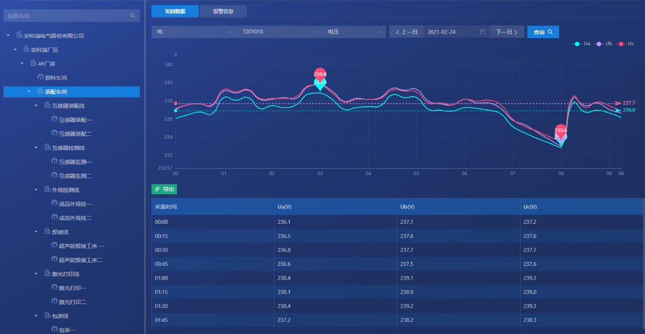 查詢各回路或設(shè)備指定時間的運行參數(shù),報表中顯示電參量信息應(yīng)包括:各相電流、三相電壓、總功率因數(shù)、總有功功率、總無功功率、正向有功電能等.