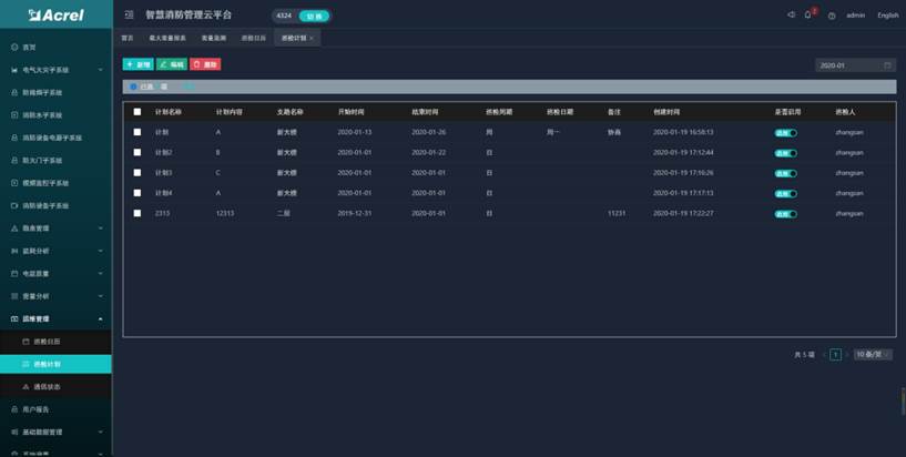 點擊菜單中的巡檢計劃,進入對應(yīng)的頁面,對相關(guān)的巡檢計劃進行查看工單,切換日期來查詢所要預(yù)覽的數(shù)據(jù),支持對巡檢計劃的新增,修改和刪除。